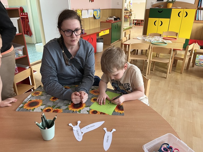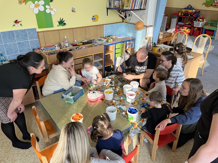 V naší mateřské škole proběhl Den pro Ekoškolu, během kterého děti na jednotlivých třídách plnily tematické úkoly zaměřené na odpady, vodu, prostředí a jídlo. Po splnění úkolů se děti s rodiči přesunuly do tělocvičny, kde byla připravena ekodílnička. Ze starých látek si mohly vyrobit panenku nebo si pomalovat látkový pytlík. Pro všechny bylo nachystáno také zdravé občerstvení, které připravily naše paní kuchařky spolu s dětmi. Na závěr každá rodina připsala své iniciály na společný Strom života.
